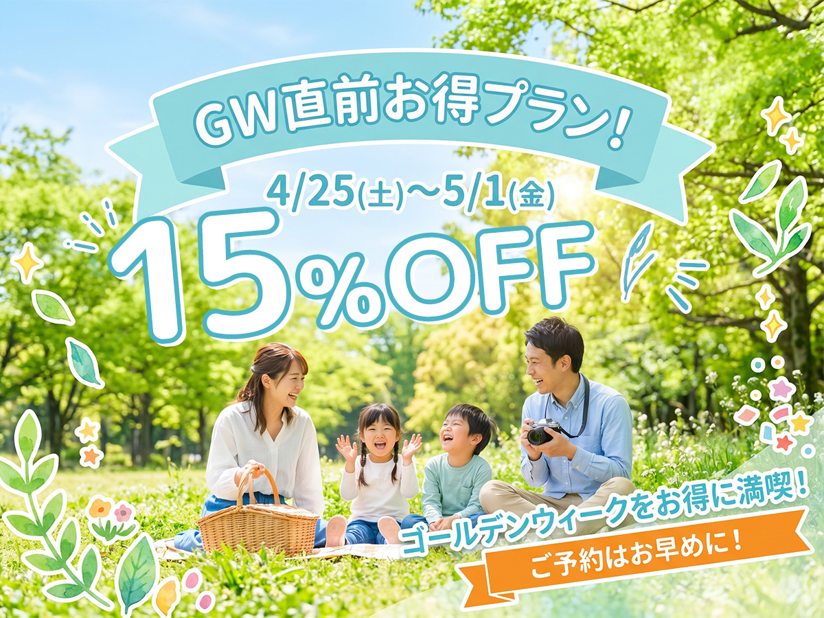 【GW直前プラン】4/25~5/1がオトク♪7日間限定で15%OFF!
