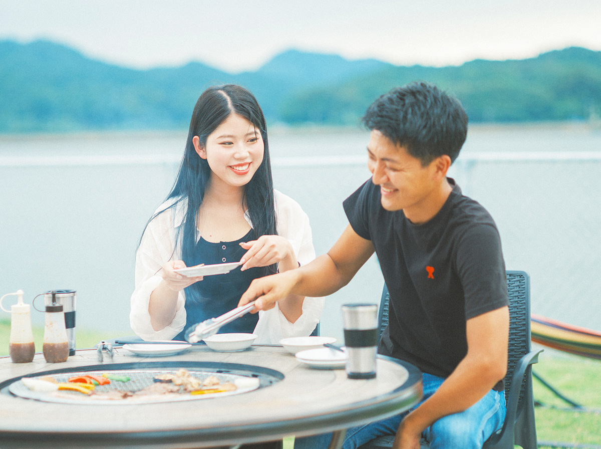 日中は、眼前に広がる澄んだ青い海と空の絶景を背に遊び、夕暮れ時にはオレンジに染まる景色を眺めて乾杯!アウトドアダイニングでBBQをして盛り上がろう♪夜には波の音を聞きながら、たき火も楽しめます。